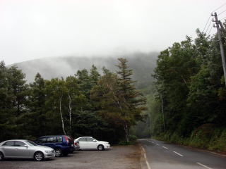 | 6時半に茅野市白樺湖畔にとった宿舎を出発。 途中夢の平スカイラインへ入るのに迷いしばらくさまよったが、7時20分に7合目登山口に到着。 7時40分から登り始めた。すでに先着車が4台停まっていた。 |