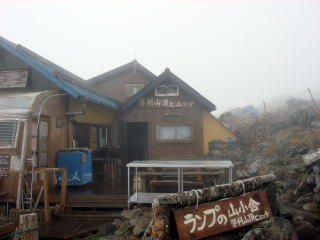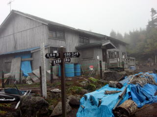 | 8時50分に2350m地点の将軍平に到着。 ちょうど雨が降って来たのでここにある蓼科山荘の軒を借りてレインウエアを着る。 天候は悪い方へ向かっているが登るしかない。 |