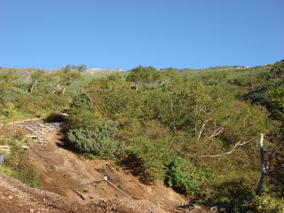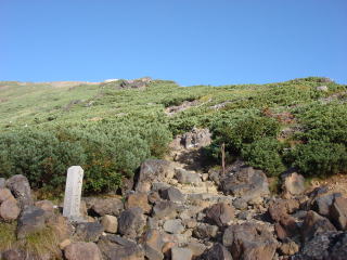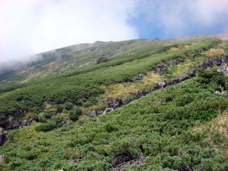 | 針葉樹林帯を抜けるとハイマツ帯の道で高木がなくなる。 | ||||