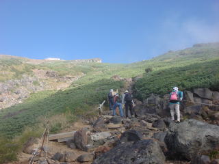 | 高度が増すとともに道の岩石が大きくなっていく。さすがに3000m級の山だ。 | ||||