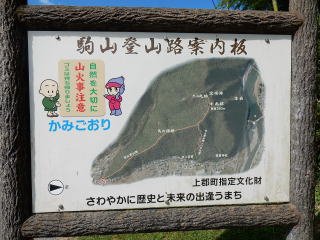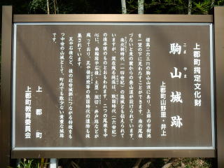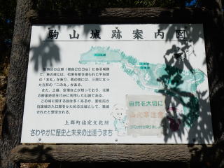 | 30分で本丸跡に到着。説明によると、駒山城は白旗城の出城として造られたようだ。 | |