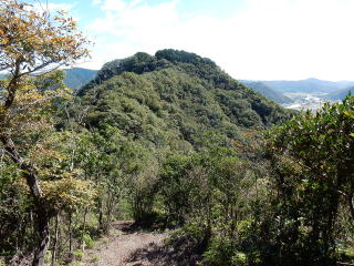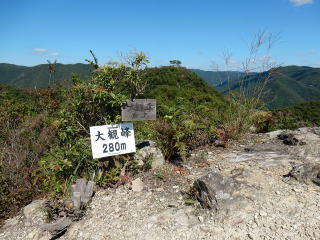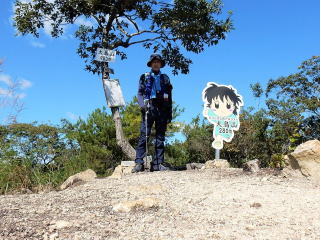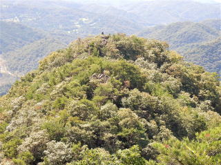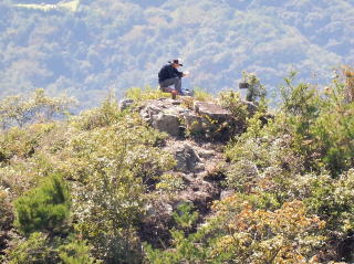 | 次のピークである大観峰280mを望む。 山頂の人物をクローズアップ。 | |