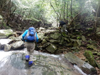 | 途中、ハチの攻撃を受けたが、何とか登ることができた。 素晴らしい沢ルートだが、最近の豪雨続きで沢が荒廃していくのが残念である。 |
