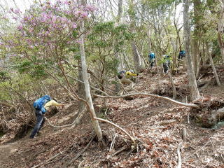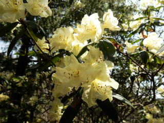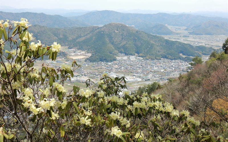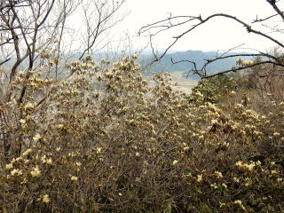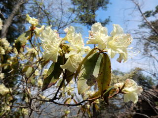 三の山辺りから淡い黄色の花びらを開げたヒカゲツツジが現れる。