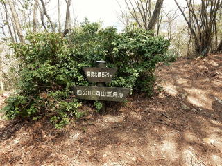 南側の展望地。           11時45分:三等三角点のある向山山頂に到着。