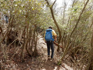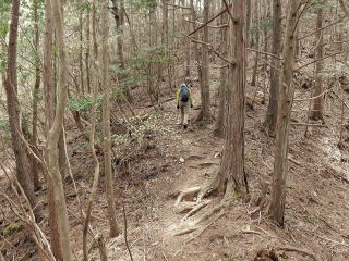 獣避け扉を2回くぐる。                    しばらく急登がつづく。