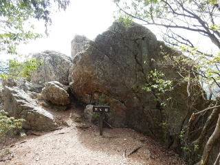 14時:天狗岩。                        岩に上がると登山口方向が見當せた。