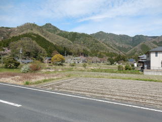 14時15分:鳳翔寺登山口に下山。            歩いてきた山並みを見ながら駐車場に戻った。
