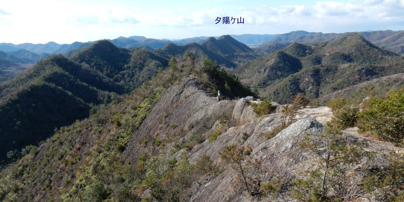 | 馬の背の向こうに連なっている尾根が歩いてきた稜線で、一番右手が夕陽ケ山。 | |