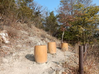 | 2月2日と2回歩いたが、本格的なハイキングとしては角尾山まで足を伸ばすのがいいが、 ファミリールートとしては金剛池登山口から登って播磨中央公園に降りてくるコースが歴史探訪ルート として楽しめると思った。 |