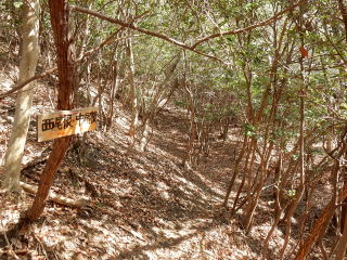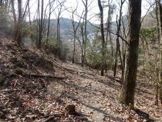 | 駐車場に戻る遊歩道が終わると急坂になり、下ってから登り返す。 | |
