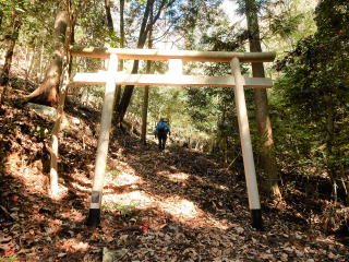 | 同行者は、FM君とTR君。 9付15分:駐車地点を出発。一の滝に立ち寄ってから左手の鳥居から登山道に入る。 |