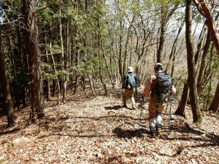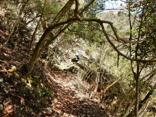 | 13時50分:下山開始。下山路は途中から峠道になり、歩きやすい道だった。 | |