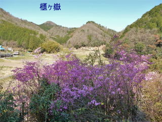 | 宮代集落に下山し、途中、鮮やかなミツバツツジのピンクに惹かれて、丸山公園展望所に立ち寄る。 | |