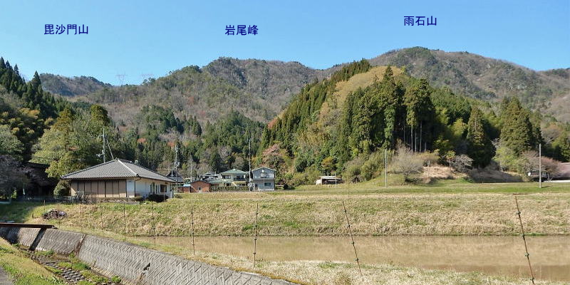 | 丹波篠山市小原 ROUTE 国道173号線で小原集落東側の藤坂川に架かっている毘沙門橋を東進し、墓地を過ぎたところの 小原自然公園の空地に駐車する。 |