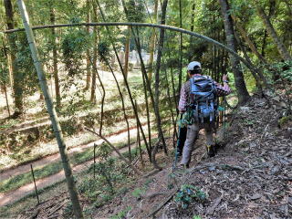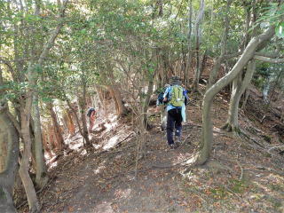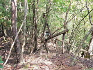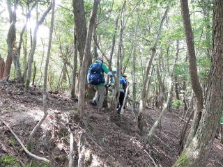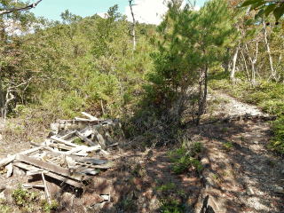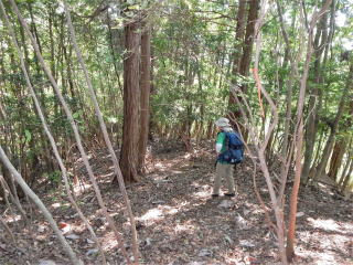 | 踏み跡は薄いが、自然林の尾根が続き、TVアンテナ残骸のあるところまでは迷わず歩けた。 | |