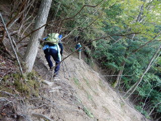 | 12時35分:出発。途中、崩落斜面の際 を慎重に通過する。 | |
