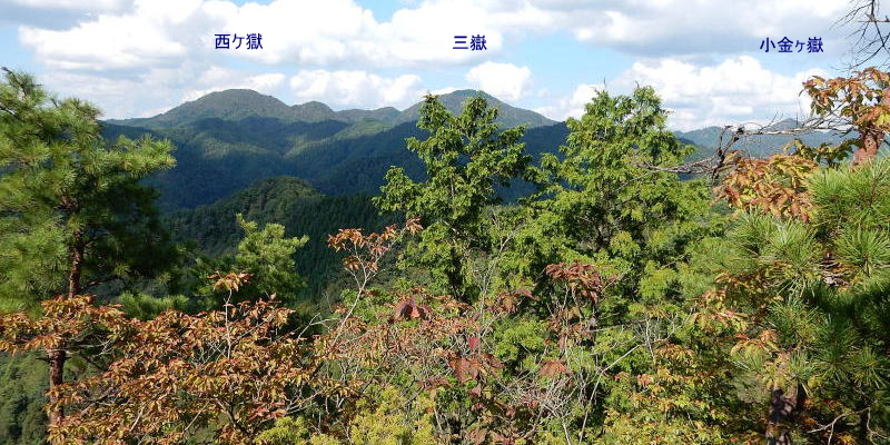 | 20分ほどの苦闘ののちルートに復帰し、北側を振り返ると三嶽-小金ヶ嶽の稜線かすぐ目の前にあった。 | |