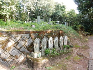 | 14時30分:獣避け扉を出ると墓地の前。 | |