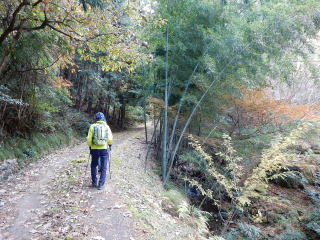 一旦普通の道に戻ったが、再び擬木階段の道になり、延々とつづく万華鏡のような紅葉が心地よかった。