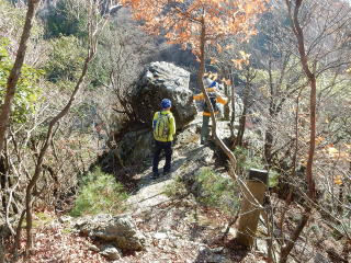 そして、岩場の道になり、鎖場が次々と現れる。