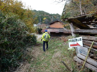 獣避け扉を入る。最初は舗装路で、途中に別荘地もある。