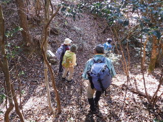 | 展望地でランチタイムを過ごしてから、12時5分、金比羅宮の左から踏み跡をたどっていく。 | |