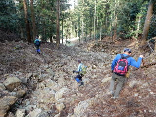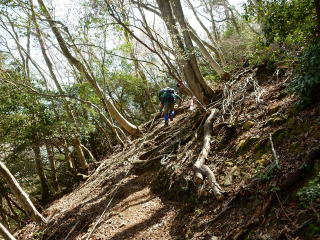 | 14時55分:下山開始。最初はここも急坂だ。 | |