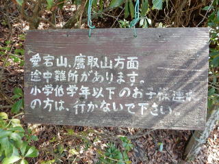| 14時20分:五大山へ向かう。途中に子供連れへの注意喚起標識があった。 | |