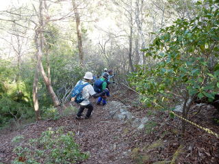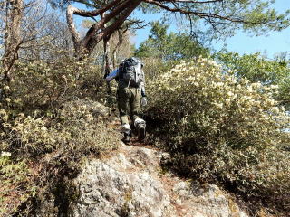 | 岩稜の道を慎重に登っていく。 写真撮影も足場を確保しながら慎重に。 | |
