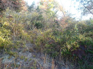 | 標高200m位から斜度が60度近くなり、ルート取りに手古摺りながら登っていく。 11時40分:山頂に到着。 |
