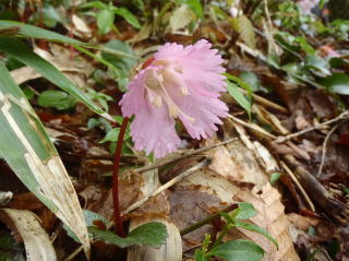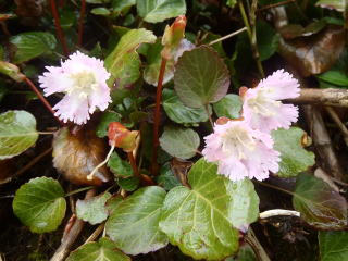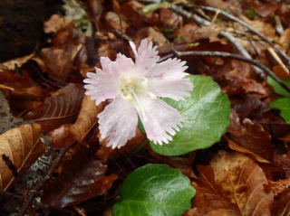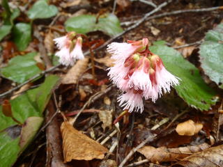 | 登山道はいきなりの急登。少し歩くと、第一イワウチワ発見か、と思ったらイワカガミだった。 | |