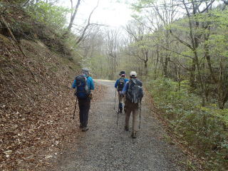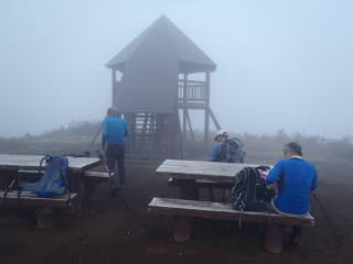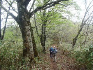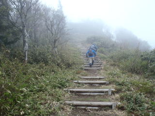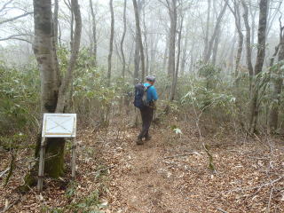 | 10時50分:高清水トレイルに入るが、残念ながらガスに覆われて景色は見えない。 | |