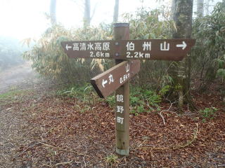 | 11時45分:伯州山山頂に到着。展望が閉ざされているので、すぐに伯州山荘まで下る。 | |