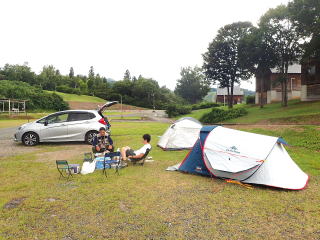 テントを張って夕食後、敷地内のホテルの温泉で汗を流してから就寝。