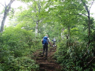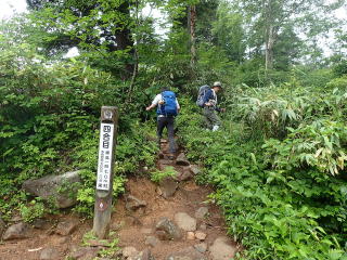 新潟県中魚沼郡津南町の国道405号を28q南進(約1時間)し、小赤沢3合目登山口へ。