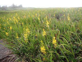 8合目を過ぎると待ちに待った高層湿原が現れ、キンコウカの群落が迎えてくれる。