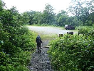 翌朝は4時半起床。5時半に登山口に向かい、6時半小赤沢3合目登山口駐車場に到着すると、