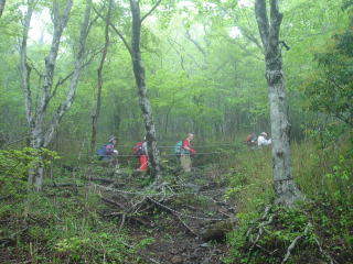 | 2006/5/19 曇り後晴れ MAP コースタイム 登り 登山口‐(1時間45分)−マタエ‐(各15分)−東峰・西峰 合計 2時間15分 下り マタエ―登山口 1時間30分 |