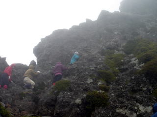 | 10時50分:強風にあおられながら東峰に登る。 | |