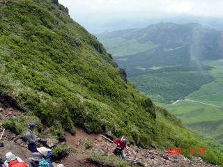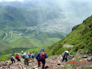 | 12時:荷物を置いていた鞍部のマタエで一休みしてから下山。天気が回復し、湯布院の街が見えだした。 | |