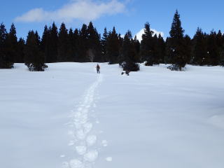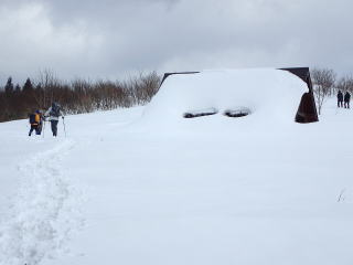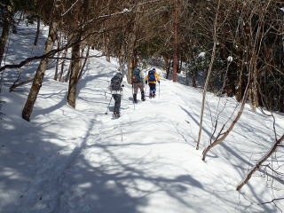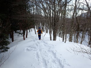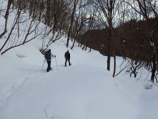 | 雪はたっぷりだが、トレースがあるので沈まずに歩いて行ける。 | |