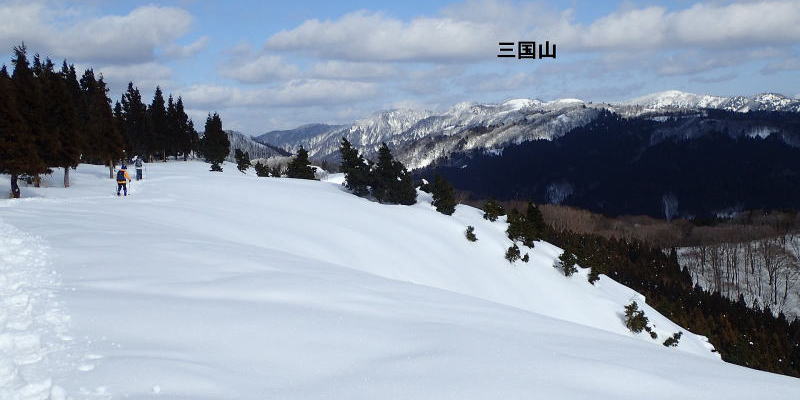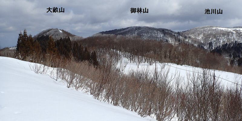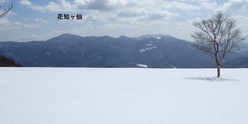 | 雪原の南側には花知ヶ仙が大きく見える。 | |