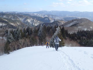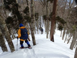 | 春にはイワウチワが咲く尾根を下っていく。 | |