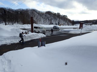 | 16時25分:登山口前のデポ車を止めている駐車場に下山。 | |