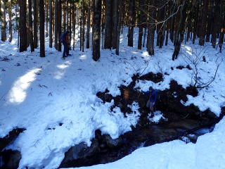 沢の支流に突き当たるので渡渉し、すぐに現われた尾根に取り付く。