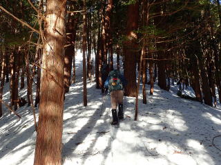 11時:登山口に到着。標高は約1100m。最初はスギの樹林帯を登っていく。