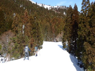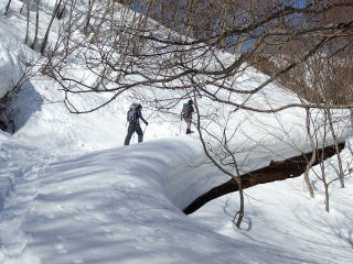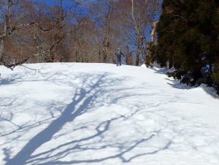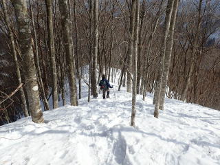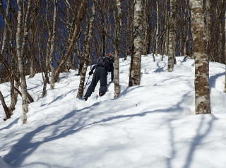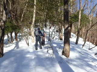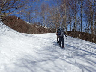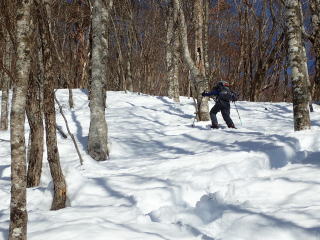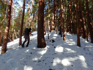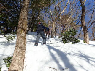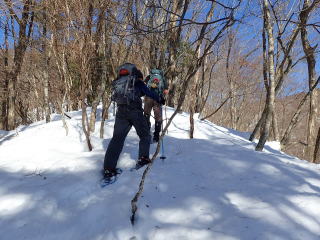 急傾斜のところはスノーシューが雪に潜り込んでしまって苦戦。
