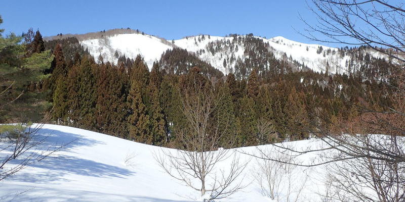 下り 山頂‐(60分)‐大乢登山口‐(30分)‐下山尾根‐(80分)‐駐車地点