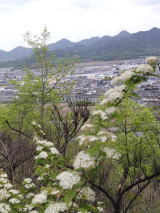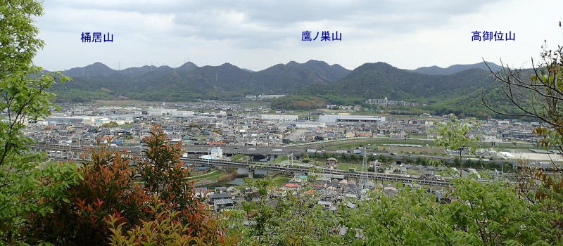 | 展望地から南側の眺望。正面の高い煙突は高砂市にある電源開発石炭火力発電所 | |||